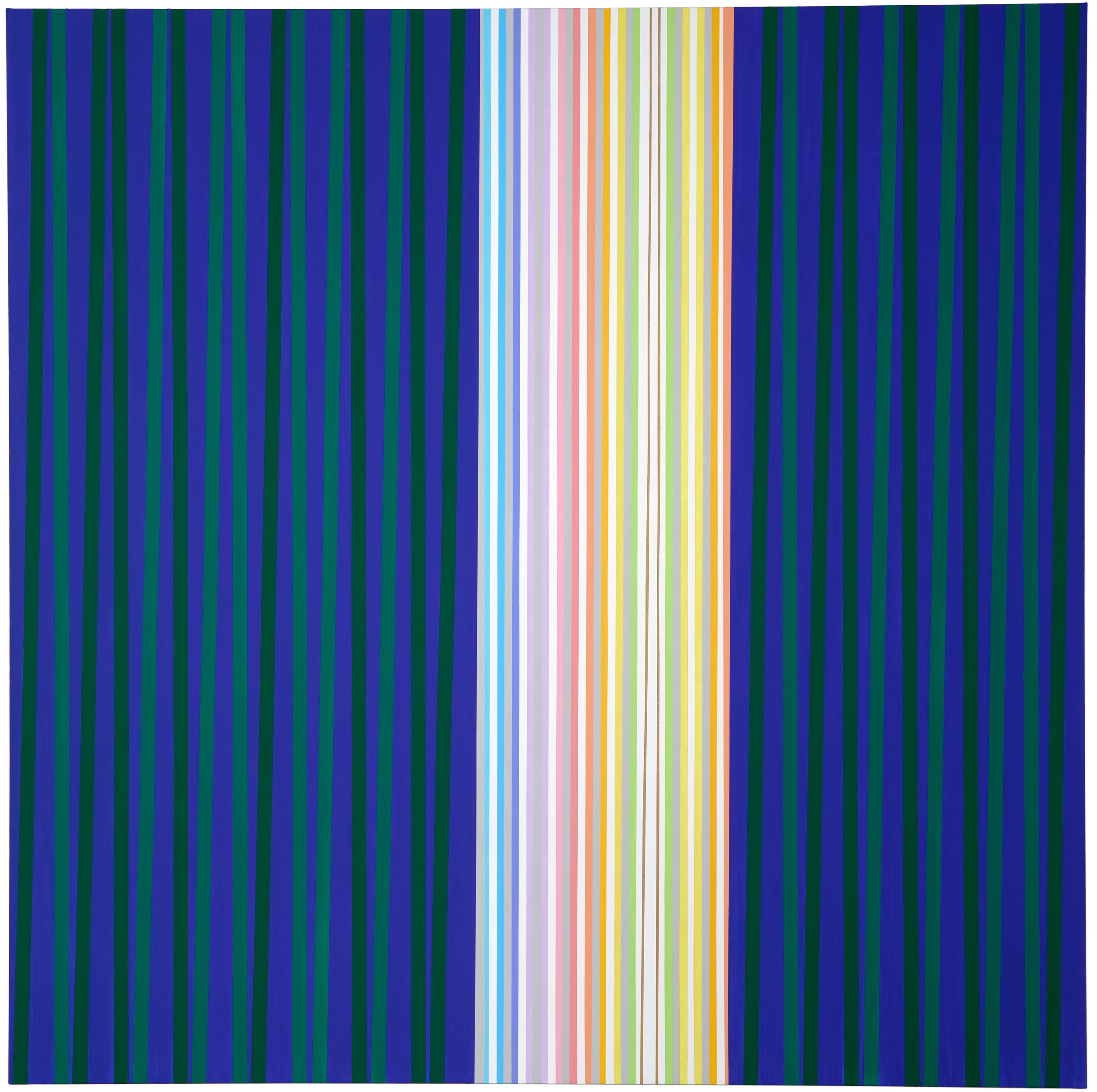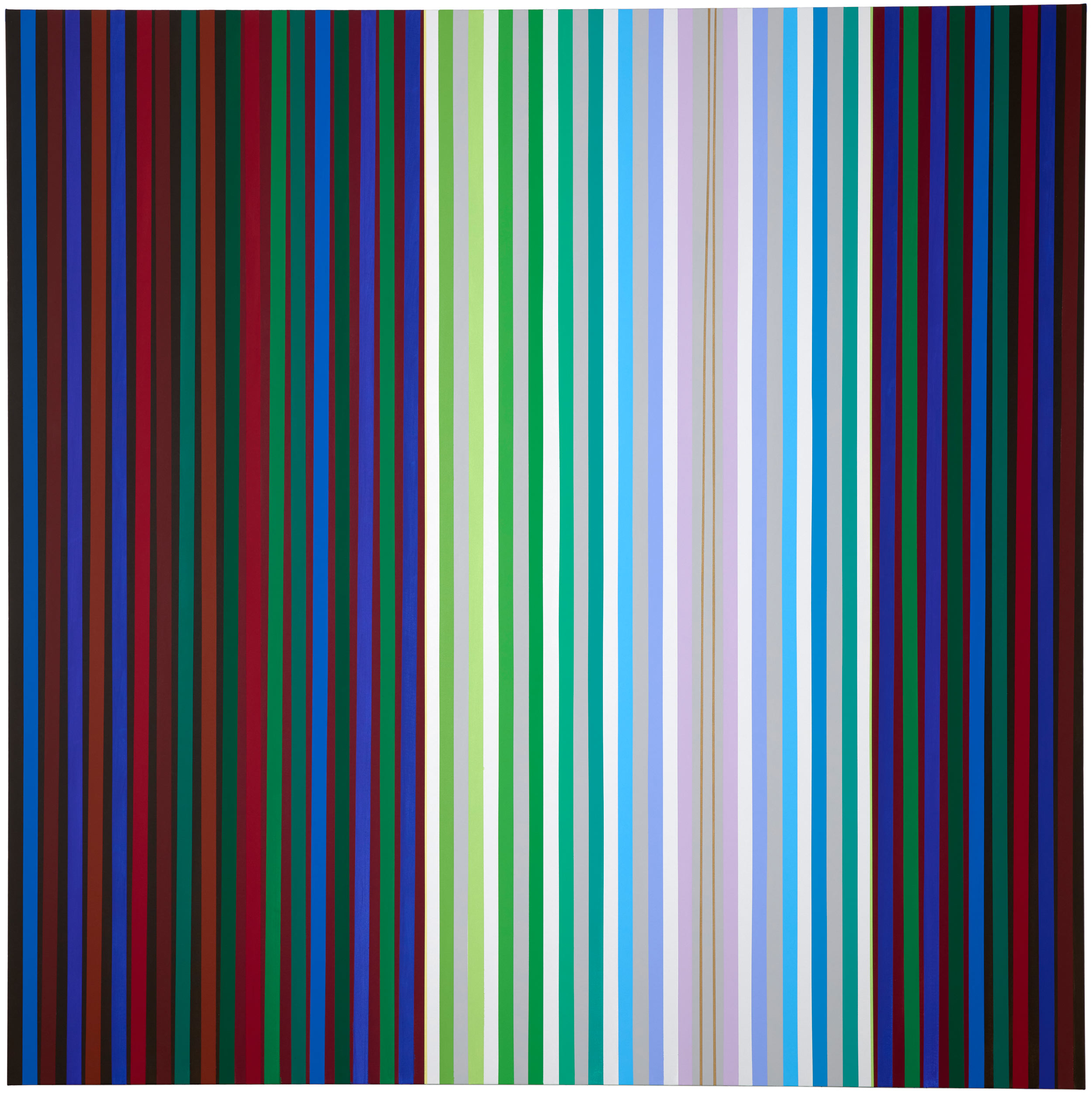 A painter is always a painter– it's just a question of getting a studio and making work. You see the world like a painter; you see it differently. I had to remove considerable obstacles before I could call myself a painter. The subject matter developed over a longer period of time. At that time, I thought my artistic inheritance was expressionism, so the brush stroke was very important. That's what I painted. Pollock was one of my heroes; you don't have a German Pollock. But when I received criticism in school about the work, it was always about me, my brushstroke, what led me to do this and that. I didn't desire that; I wanted people to engage with color and color interaction, so I knew I had to change my form. I had to get rid of all the brush strokes and the marks and make very precise paintings so that the form disappears, and the color comes forward. It wasn't supposed to be about me– it was supposed to be about the life of color, the interaction of color, and sharing with the audience the joy of sight and seeing. I wanted less attention on the shape, and the best thing I could come up with was the line. The line still has two borders where contrasts can occur and light can develop, and no one owns the stripe. If you call it perceptual abstraction, which comes out of William C. Seitz’s show, “The Responsive Eye”– the fact that color is the dominant force is left out of that label. The best I can come up with is that it's a line structure in support of a color concept.