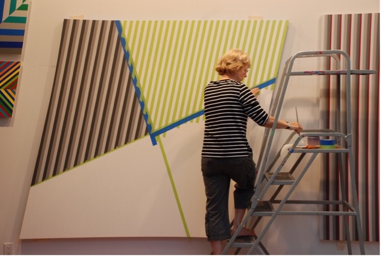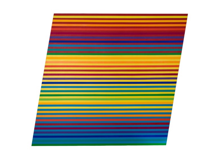 Visually, I think the shape comes first when the viewer initially approaches the work. Then, there is confusion because the stripe is not straight. People either figure out how the grouping of the stripes occurs, or they go into the color. Most of them respond, “Well it’s stripes, or not stripes.” By then, the color already takes over. The stripe is recognized at a different level in your mind than the color. Color has a deeper recognition and enters emotion at a deeper level than the stripe does.